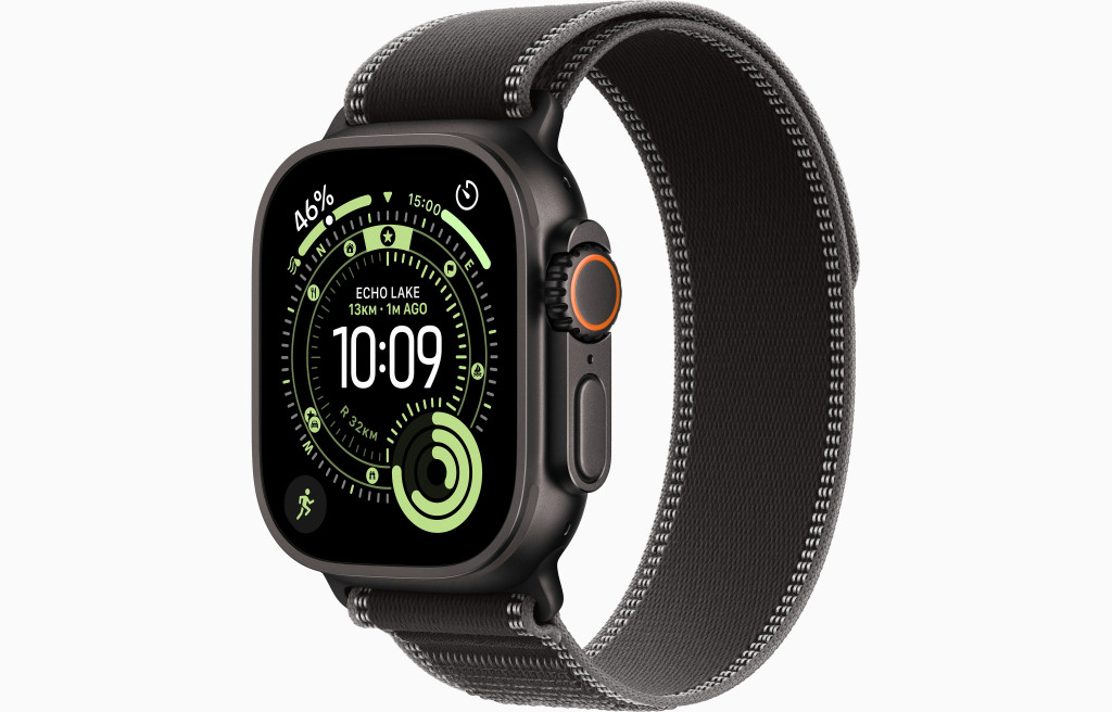 Apple Watch Ultra 3 GPS + Cellular, 49 mm-es fekete titántok, fekete-hamuszürke Terep pánt – M/L