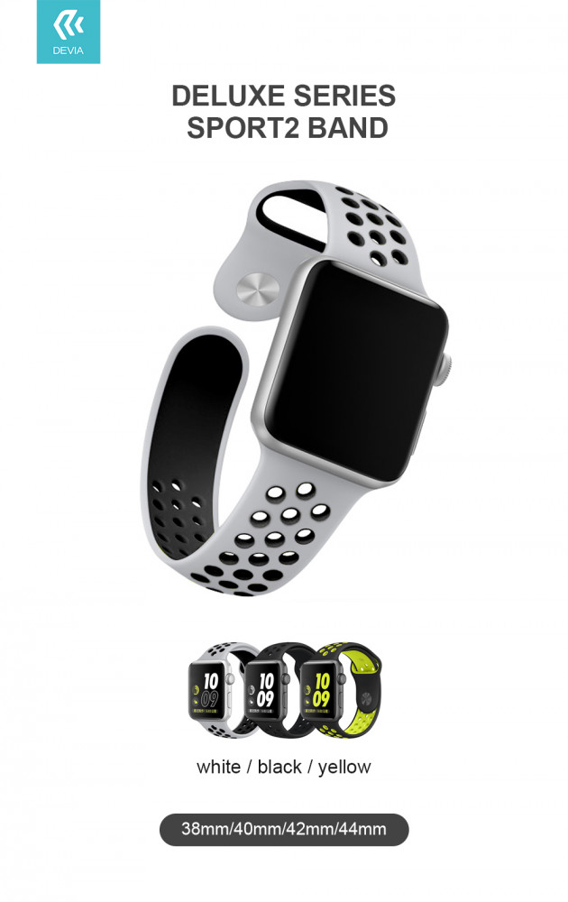 Devia Deluxe Series Sport2 Apple Watch lyukacsos sport szíj - 42/44/45/49mm - fekete/szürke